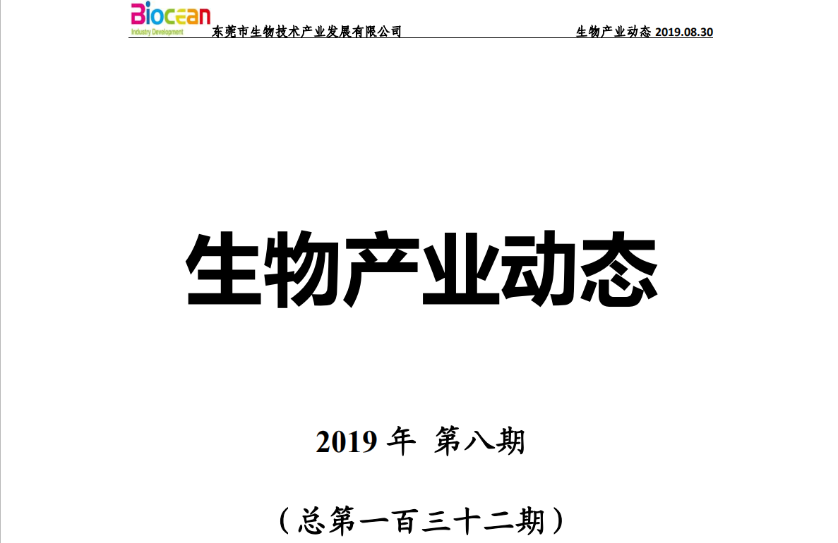 生物產(chǎn)業(yè)動(dòng)態(tài)2019年第八期(總第總第一百三十二期)