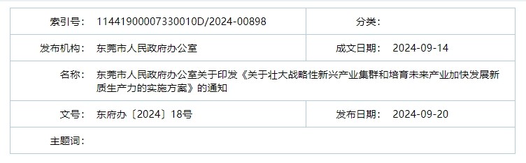 東莞市人民政府辦公室關於印發(fā)《關於壯大戰(zhàn)略性新興產業(yè)集群和培育未來產業(yè)加快發(fā)展新質生產力的實施方案》的通知