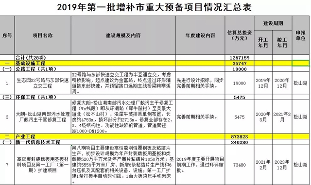 2019東莞市第一批增補(bǔ)重大項(xiàng)目