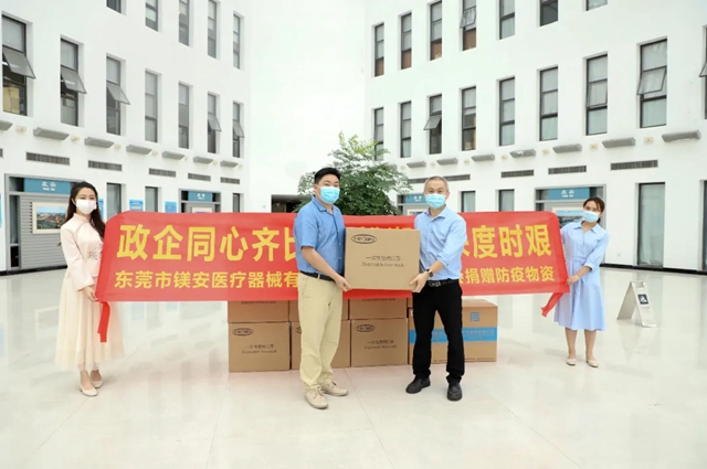 除了豐綠源,專注于高值植入類醫(yī)療器械產(chǎn)品技術開發(fā)的東莞市鎂安醫(yī)療器械有限公司(以下簡稱“鎂安醫(yī)療”)也在總公司宜安科技的帶領下,積極助力園區(qū)做好防疫工作,緩解防疫物資壓力,將生產(chǎn)的第一批口罩中的2萬個贈予了管委會。